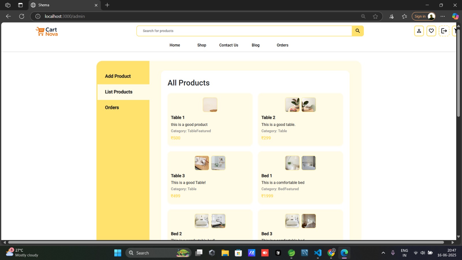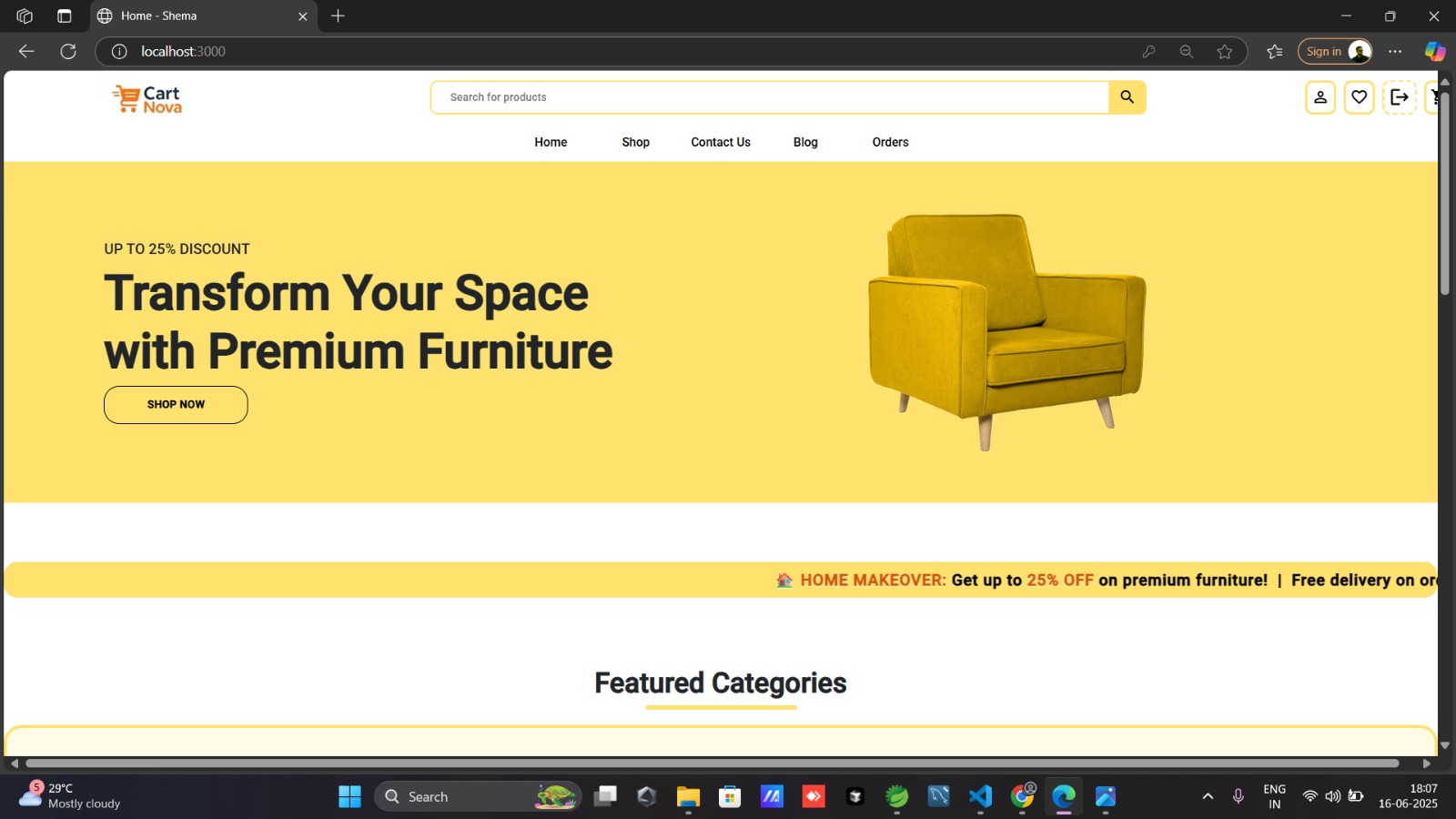 CartNova is a minimal and elegant furniture e-commerce platform built to deliver a clean user experience with powerful backend features. With a smooth UI powered by React and Tailwind CSS, and a robust backend using Spring Boot and MySQL, CartNova makes managing and shopping for furniture seamless.