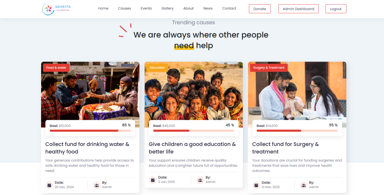 Sahayta Foundation is a minor college project built to simulate a functional NGO portal. Developed using core Java (Jakarta Servlets), JSP for frontend views, and MySQL as the backend database, it allows users to register, log in, and donate.